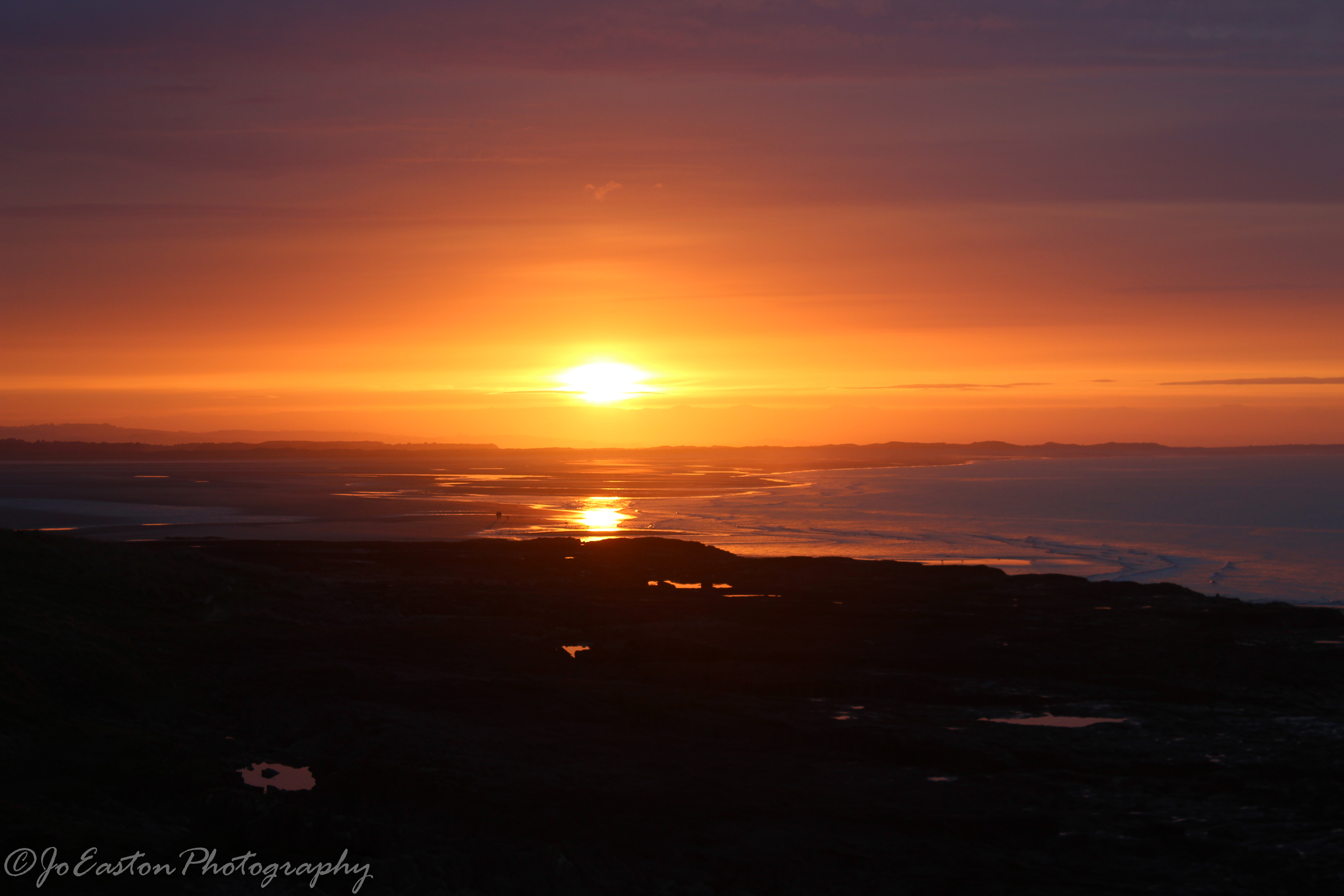 This photograph was taken in Northumberland looking over to Budle Bay. If you look closely you will see a couple walking along the beach enjoying the spectacular sunset.